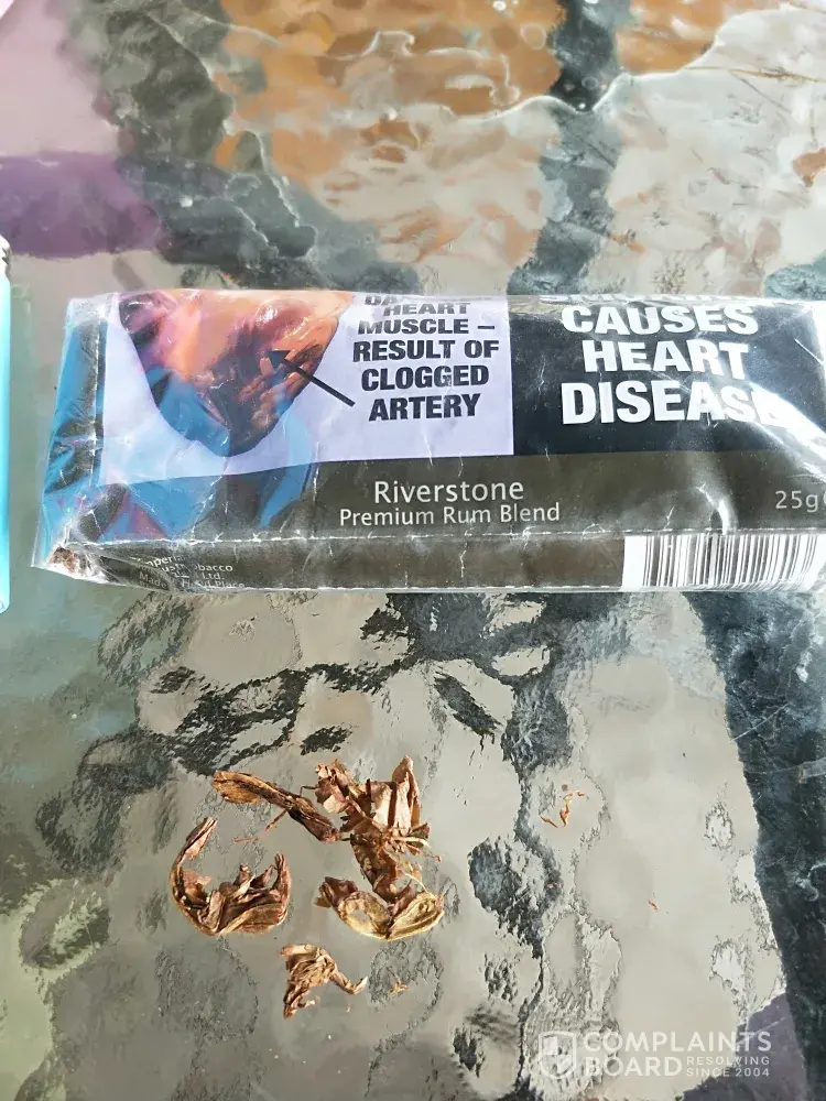I purchased a 25 gram pouch of loose tobacco from a smoke shop in broadmeadows shopping centre 3 days ago. There are pieces of solid leaf throughout the entire pouch, we threw away a fair bit before I came across this monster and decided to find out how to contact you. We've never had issues before and aren't sure what to do about it? Thank you.
