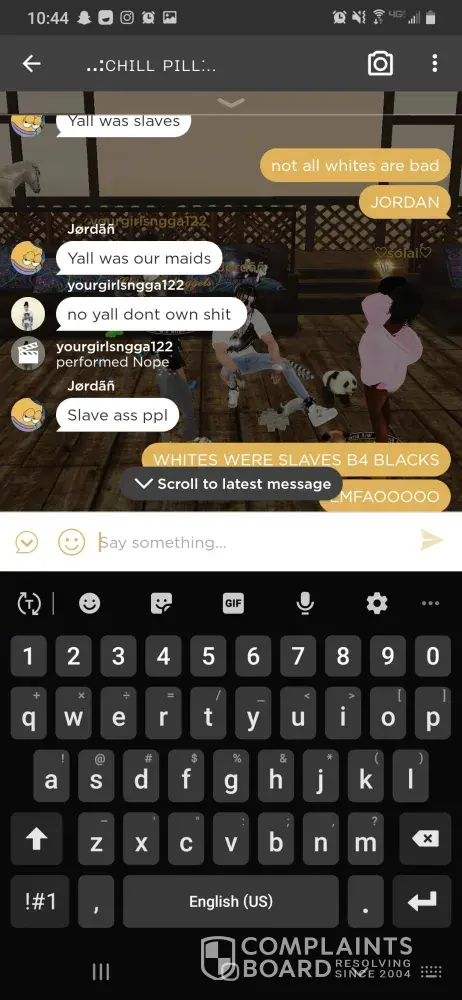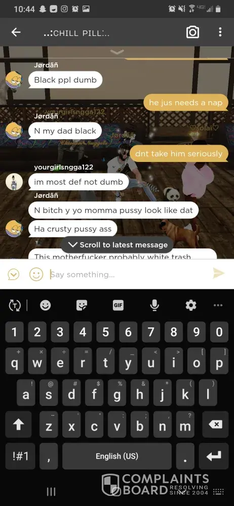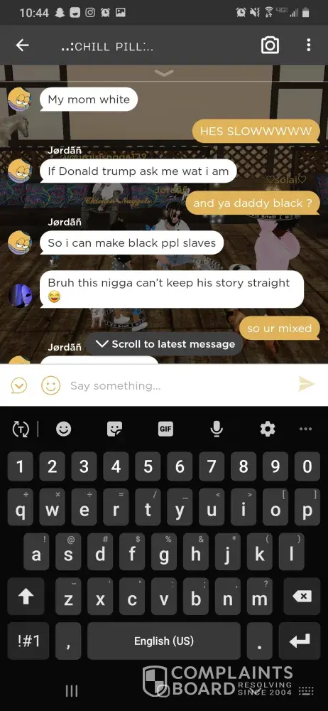 I joined a chatroom earlier this morning and there was a user talking about weather Cardi Bs rear end was real or fake. so I was trying to be helpful and Google it, and when I told him he got angry and made some very very rude comments. He was talking about wanting to come to my house and shoot me, he threatened to hack my account, he was being very racist and saying that hes going to buy an African American person and make them his slave. He went on and on about race and her was very disrespectful. There will be just a little bit of the conversation attached along with his profile.