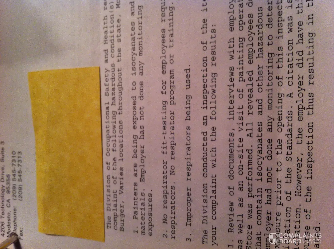 Unbeknownst to me the last four years I worked I was being exposed DAILY to dangerous toxic and deadly isocyanates chemicals. In-N-Out Burger never provided the me or the other men in the painting department with the proper respirator a PAPR. They violated several OSHA laws and I have the letters to prove it.