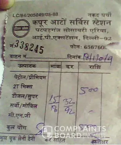 On 18th Jan 2010, at this petrol pump "Kapoor Auto Service Station Patpargang Society Area, I.P. Extension, Delhi-92", I asked the attendant to fill Rs. 500/- Diesel in my Indigo. I was monitoring the meter but suddenly when the meter was reading around 300 another attendant appeared from another direction and asked me to pay money and sign on the bill which I never asked for. Within a fraction of a second as my attention was diverted the attendant who was filling diesel abruptly pressed some key on the meter and diesel stopped. On hearing the diesel stop sound I immediately turned towards the meter and it showed zero for some seconds and then 500. I got cheated. The attendant had reset the meter. At the rate at which the diesel was being filled into the tank I think I lost around 150 rupees or more. This type of cheating must be stopped...