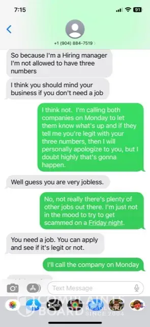 Desired outcome: Please investigate. Please have them to stop sending me nasty and unprofessional emails and please have his reported to their management if this is an legitimate job posting