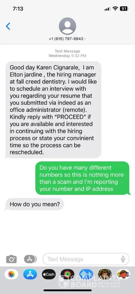 I have received 4 text messages from 4 different numbers all requesting via text links to apply and asking for personal information and to give passwords and users names to idme.com when I go back those jobs don't exist anymore -- interesting and they are using a name of a Realtor in Canada. 230 people applied for a job with starr partners that did not even truly exist along Fall Creed Dentistry and Mobile link companies all scams How is indeed protecting customers looking for a job? I reaching out to local media and media in Texas where indeed supposedly has a main office yet no email or phone number to contact. I am also reaching out to FBI Fraud