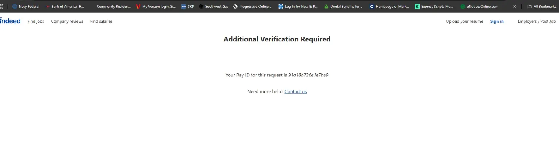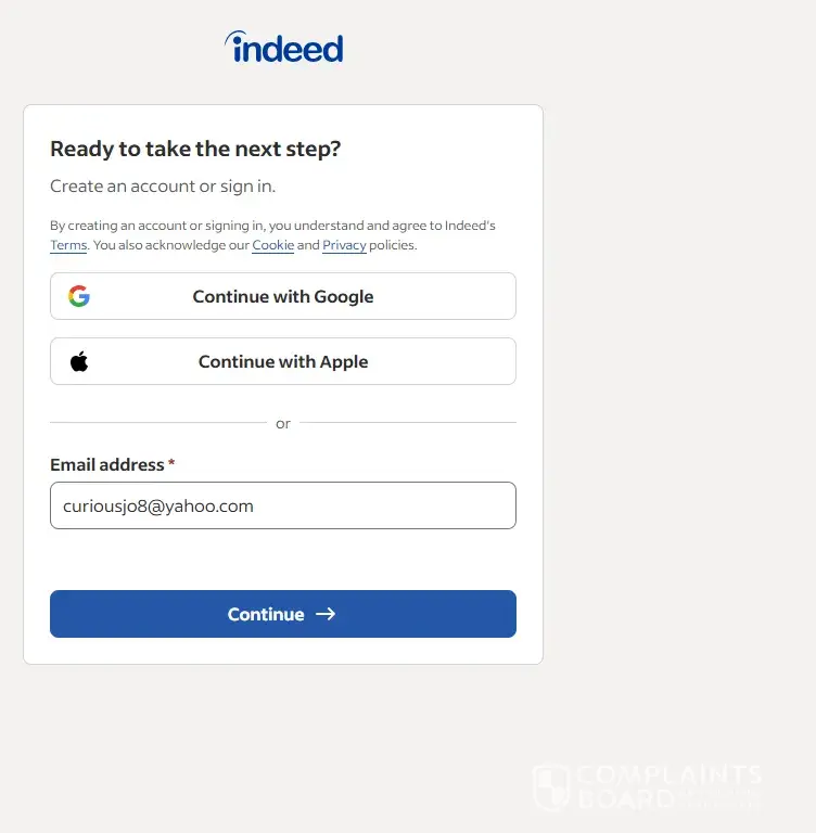 Indeed had me listed as an employer instead of a job seeker. So I deleted my account. Now it won't let me create a new account with any of the four email addresses that I have. It won't accept my phone number, which was associated with the account I closed. I've checked all my settings, there seems to be a bug within the Indeed website.