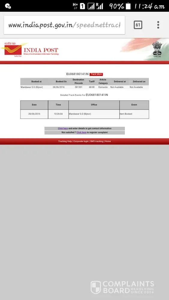 Respected senior; I am chitraveer singh my father booked my orginal documents through speed post in 28/06/ 2016 at 10.26 Am . for karwar District karnataka. Still today is 30/ 06/ 2016. There is no updation is made yet. What action is to taken by me . My tracking no is EU068180141IN. Please do me favour & i am in hope of positive response. Chitraveer singh mob no [protected]