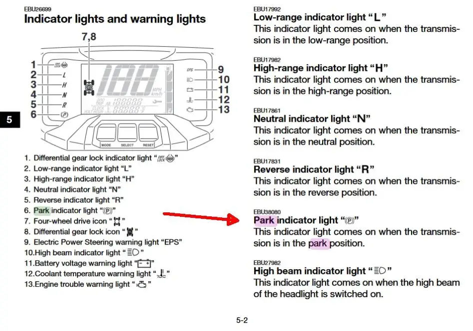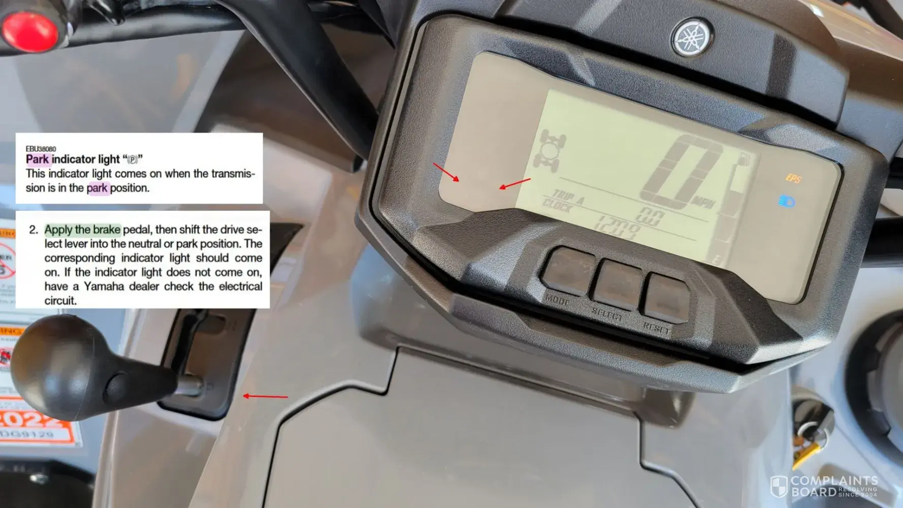 The owners manual says in 2 places that the Park lamp should illuminate when the shift lever is in park and if not, to take it to a Yamaha dealer.