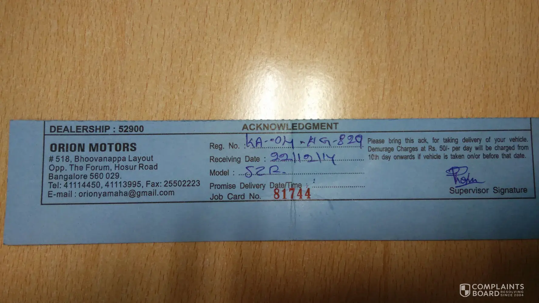 They are highly trying to hide the problem.They are not ready to open my bike. Ever worst purchase and service experience. I would never suggest anyone to buy YAMAHA product from such dealer, who would never even bother about you or your bike once after getting money from you.
