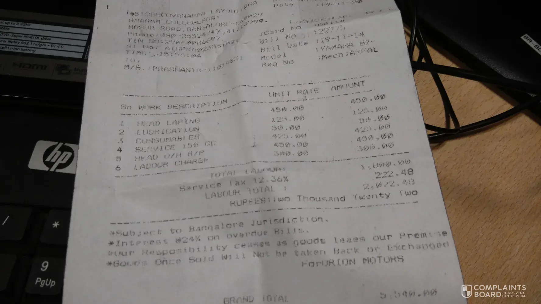 Fraud Dealers of Yamaha Lotus Yamaha, Bangalore.