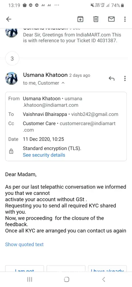 Complaining on Indiamart for Reactivation of my Indiamart Seller Account