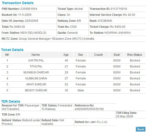 I would like to bring this to your kind attention that there is something wrong happening at Indian Railways. Through this medium I would like to bring the wrong doings of Indian railways in front of each and every one. I had booked four Tickets on 31st May through www.irctc.co.in. Here are the booking details: