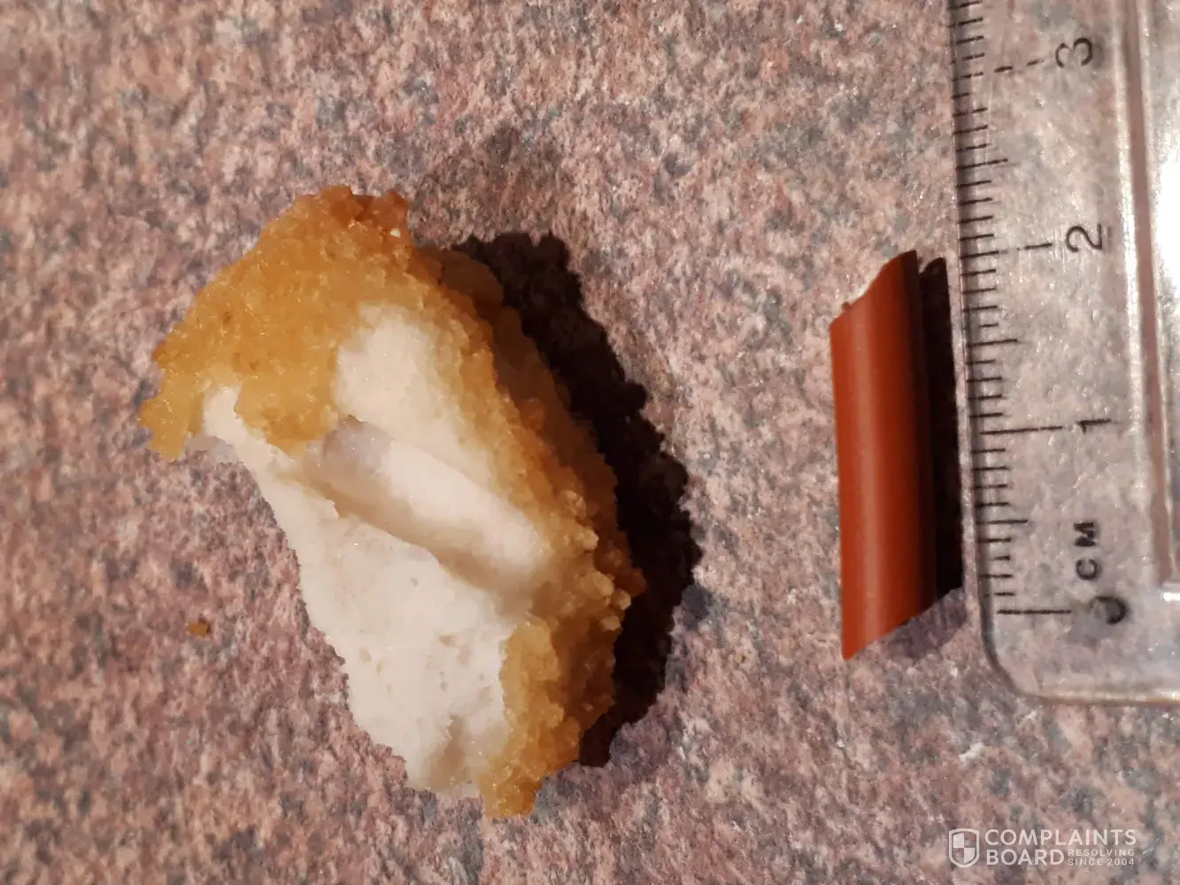 A few weeks ago (1st Sept 2019) we served our small kids (aged 7 and 4) some Inghams Chicken Nuggets and were shocked to find a 2cm piece of orange rubber inside one of the nuggets. I'm not sure what it is and where it came from but we're very lucky the kids didn't eat it as this could have caused major health problems! Please investigate further, I still have the object if required and see photos attached. I look forward to your response.