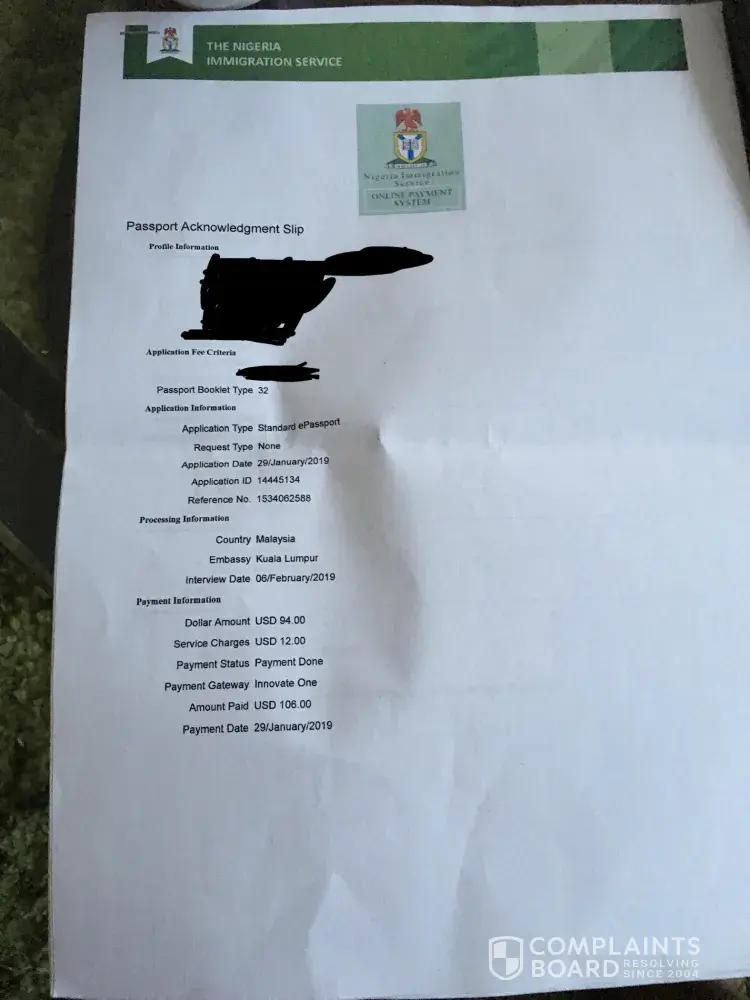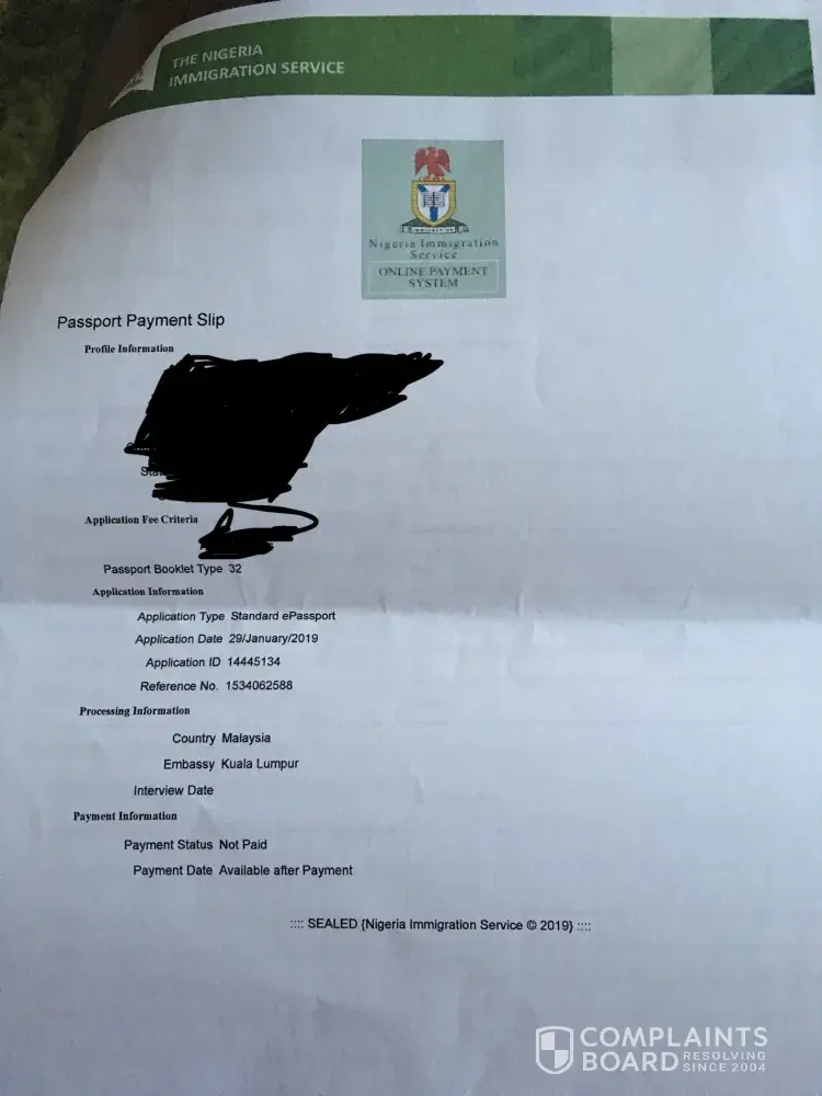 Hi I made payment for the issuance of a new e-standard passport (32 pages) via this company as it is the supplied site for paying for a new passport. I went to the supposed embassy that handles consular services which is in Kuala Lumpur, Malaysia and was informed that issuance of new passports for adult Nigerians had been discontinued. I wrote an email to...