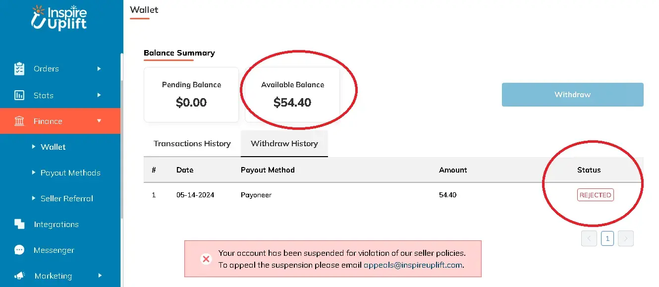As a seller, you enter into a Faustian bargain when you engage with InspireUplift.com. They lure you in with promises of reaching a broad audience and lucrative sales opportunities. But beware: once you start making sales, you're treading on thin ice. Many sellers have reported their accounts being unceremoniously deleted after making significant sales, leaving them high and dry with no recourse or explanation.