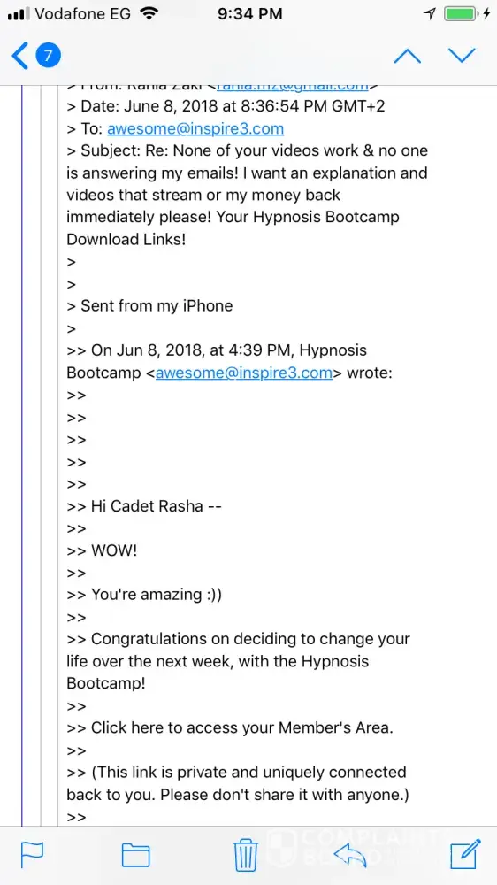 I purchased their hypnosis bootcamp package earlier today for $147 & an additional $ 47 for the subliminal wiring program. The videos do not work and seem to not exist. I sent emails to them and received nothing but tickets that for one to view, one must log into their gmail account, which I also found quite disturbing & unusual & i was not comfortable to proceed with logging in. After several attempts to work the videos with no avail, I started checking the company online in spam sites. I found them on scamero and found the complaints here. I just want my money back.