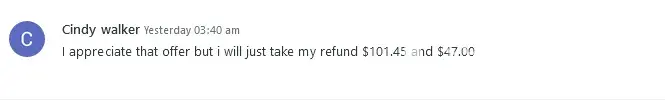 You sent us a message yesterday declining the $300 offer we made to you. We replied on the same day (yesterday), confirming that a full refund had been made.