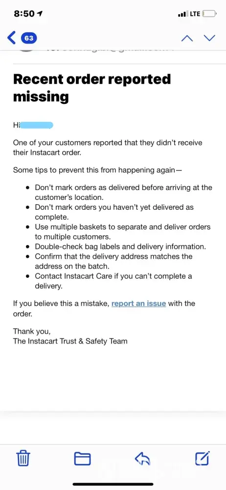 Desired outcome: I want to work for Instacart and have Tony B investigated