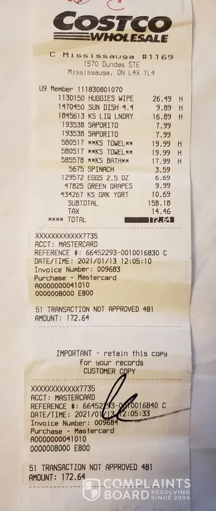 You can see on the receipt "C" two transactions : the first part that was the Instacard transaction denied and the second part at the bottom, the same transaction accepted but with my own card.