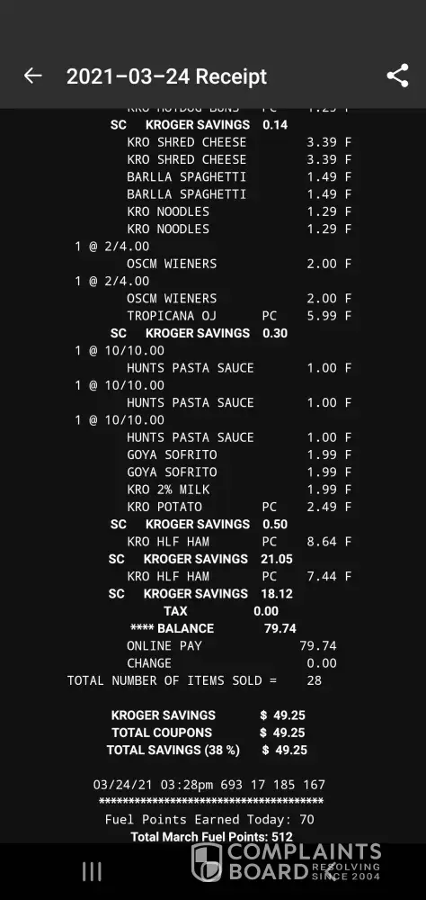 I place a two-hour order with Krogers at 4:50 pm on 3/14/21 and Instacart was to filled the order. At 4:58 after placing an order I get a text confirmation of the order. 8:30 pm my order was to be delivered. I never received a $207.16 order, Landon B. used $50.00 for HIS OWN PERSONAL USE! Landon will be reprimanded and allowed to repeat THEFT!