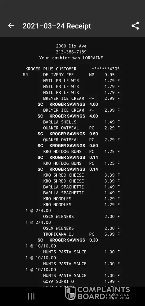 Order number: [protected] Order date: 2/10/2021 I placed an order on 2/10 at Kroger. The shopper's name was Richard S. He did the the shopping, checked out and never showed up to deliver food. We had said no substitutions, he substituted. We have used this company for the last couple of months and had no trouble. I called insta cart and they could...