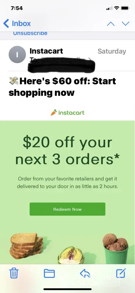 Would not honor $20.00 off offer for next 3 orders in Instacart email or a $15.00 offer off next 3 orders. Reason given was that I already had used a credit. Credit was $2.80 that I was overcharged on a previous order and I could not use more than one credit per order. What a bunch of BS. I'll go to the store from no on, nothing but a bait and switch from a lying cheating company.
