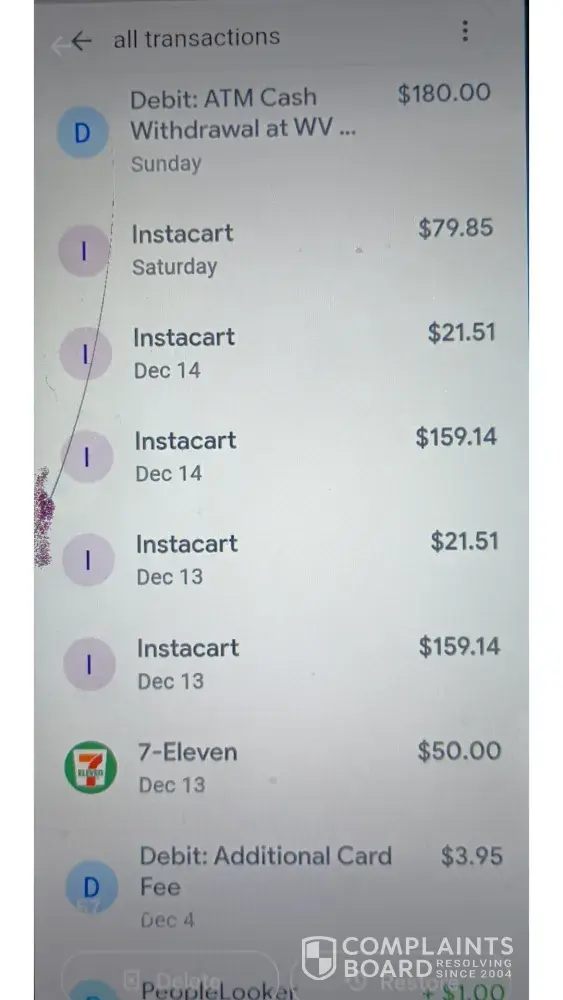 February 3,2023 My transaction denied by bank, checked bank and found above debits. Called Instacart spoke to a women, While she was speaking to me she said she was looking into my account Actually, she was sending me an email explaining "holds on an account"