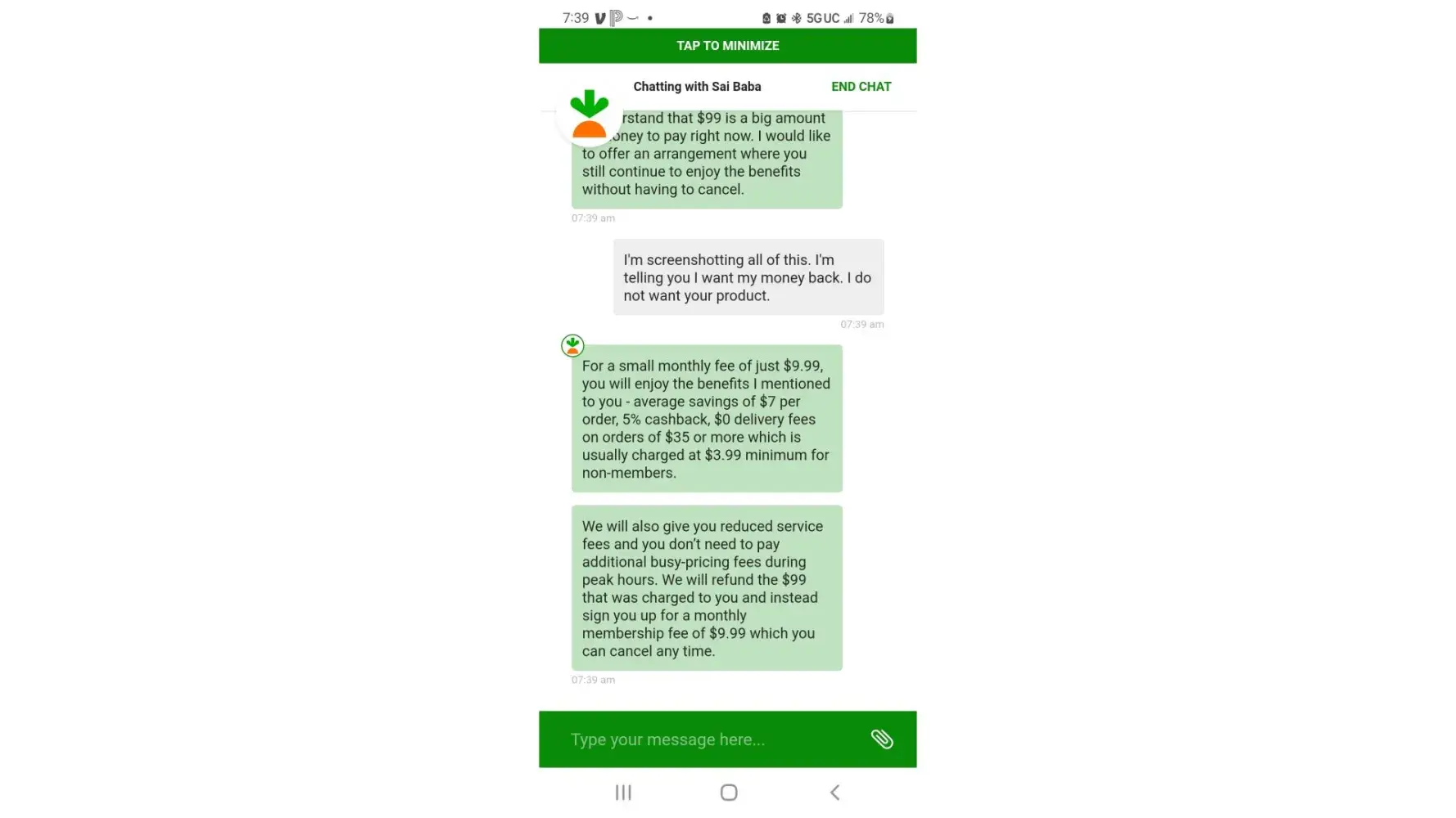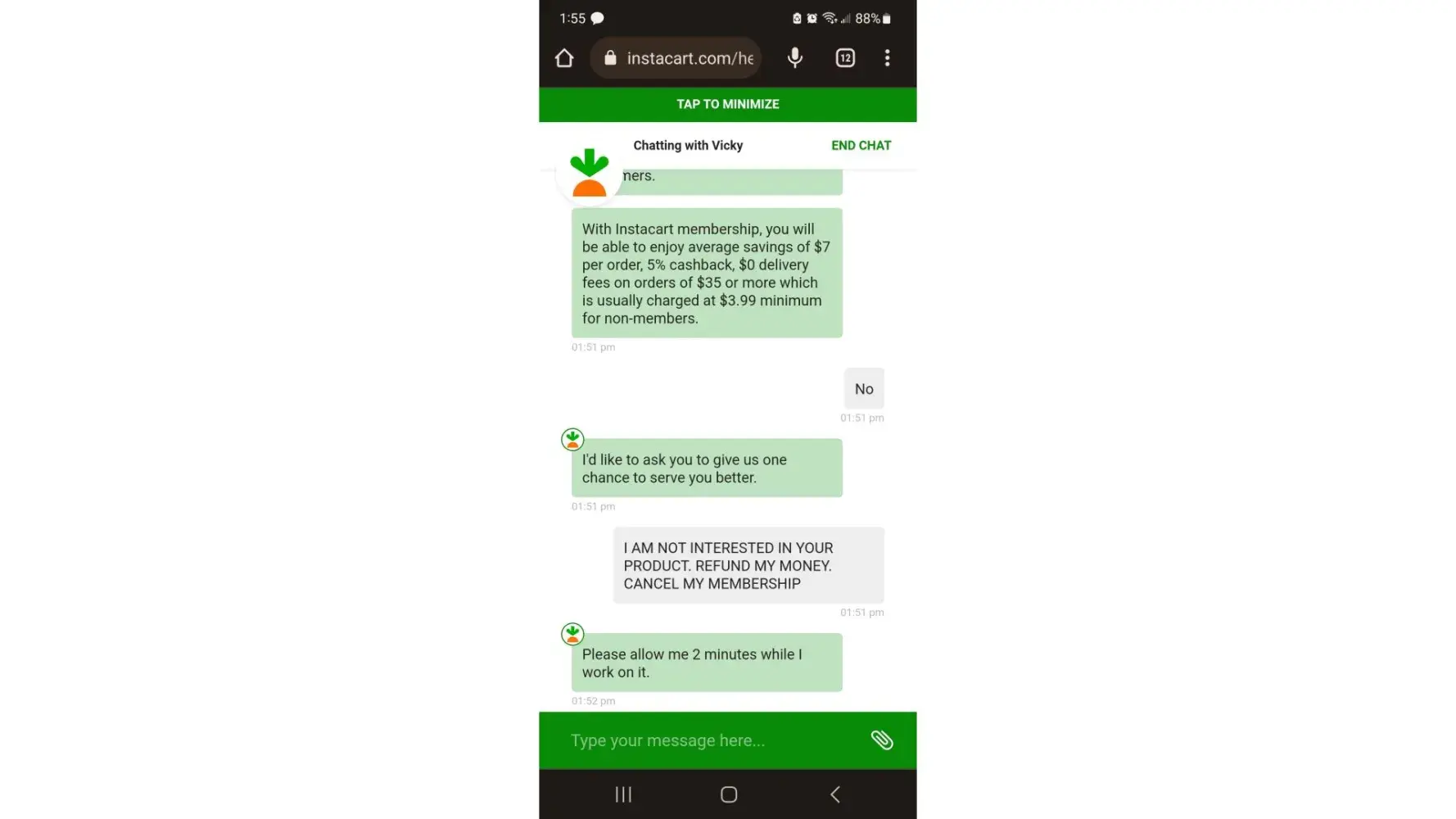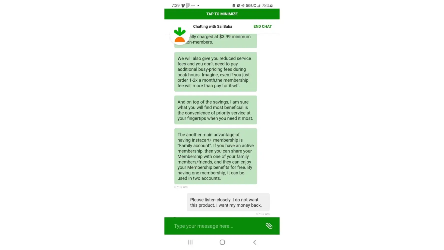 Instacart automatically renewed my membership, even though i had canceled it in August. I contacted them October 20, 2022 to cancel my membership yet again. The agent made it extremely difficult to cancel. He continuously attempted to sell me the product after I made it very clear several times I was not interested and wanted to cancel. I have screenshots of the entire conversation.