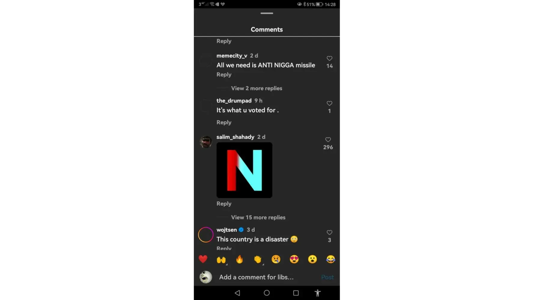 Instagram allows racial/verbal abuse ! Allows people to be racially abused, then when you retaliate, all of a sudden, it's against the community guidelines ?! That's outrageous ! Make's me think you lot are racist aswell. You block and remove all the rest of the comment's,.but allow racism. All sensitive comments should be flagged and removed, but you remove the response instead ?!