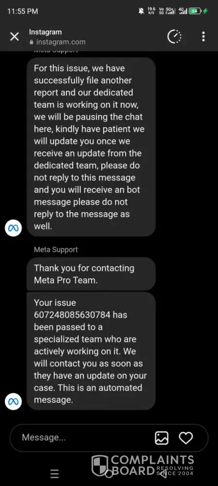 • While Instagram has a high level of trust, our investigation has revealed that the company's complaint resolution process is inadequate and ineffective. As a result, only 2% of 75 complaints are resolved. The support team may have poor customer service skills, lack of training, or not be well-equipped to handle customer complaints.