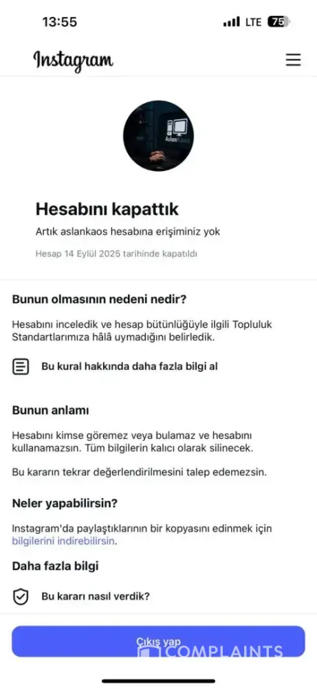 Instagram @aslankaos instagram hesabım haksız sebepten kapatıldı
