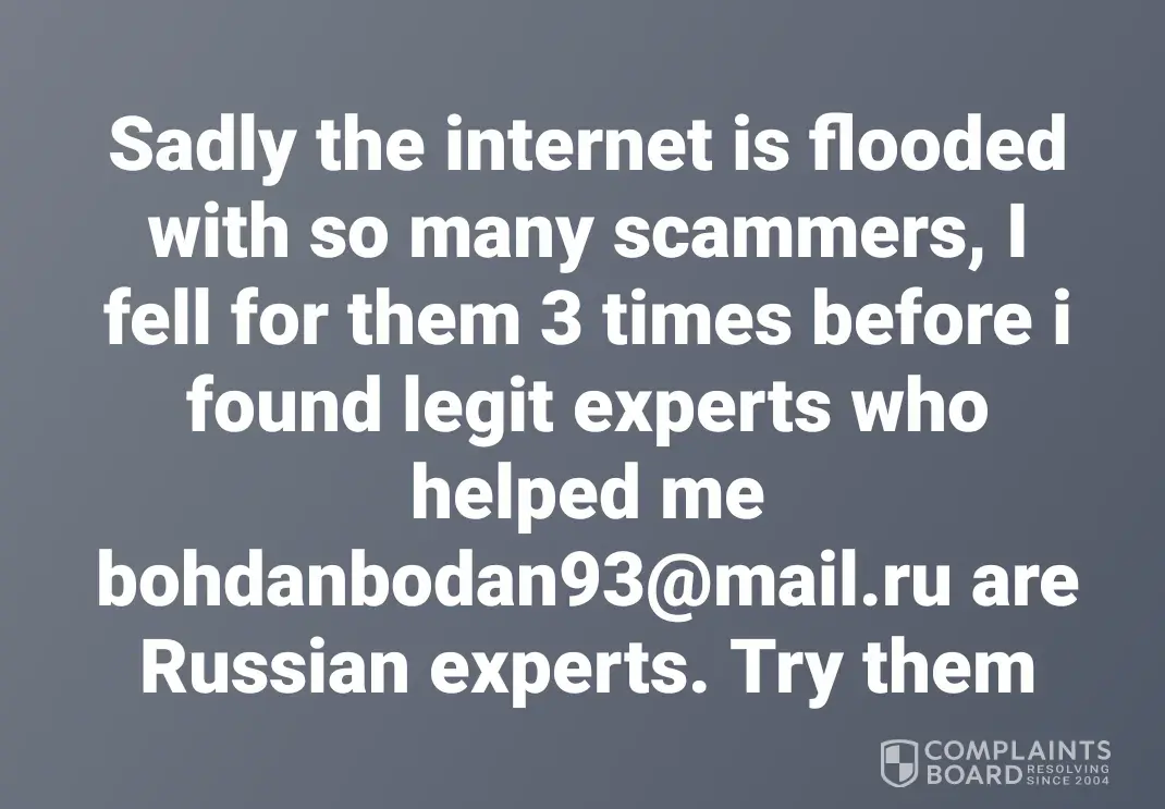 This is not a public information but i had to because if i can fall victim then you can too, i advice you to seek for help from Mr Bohdan.