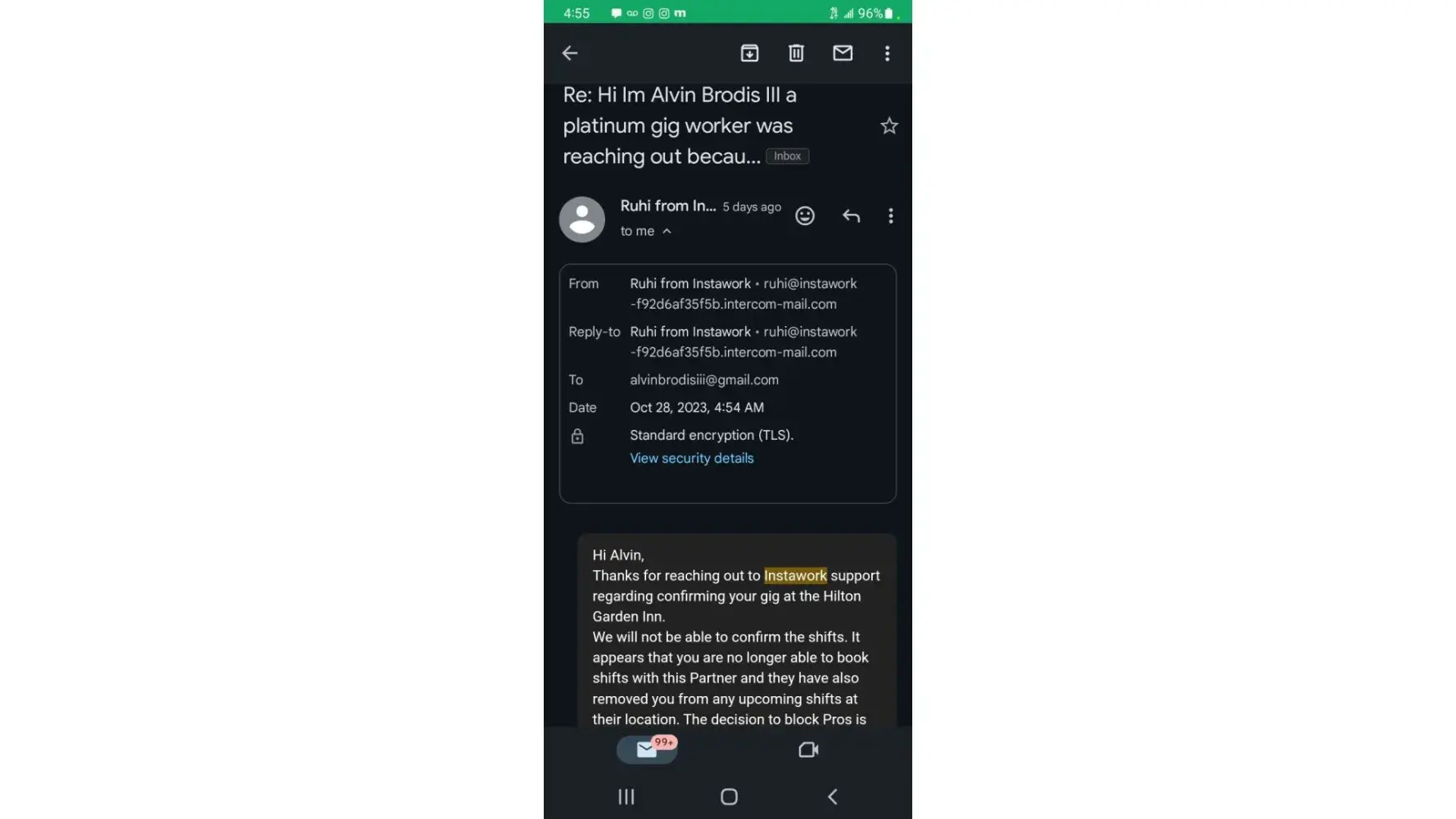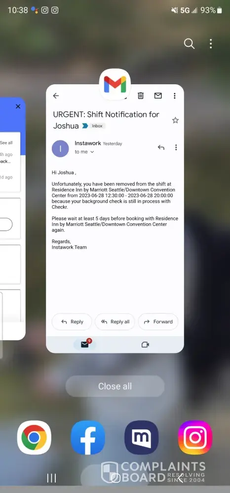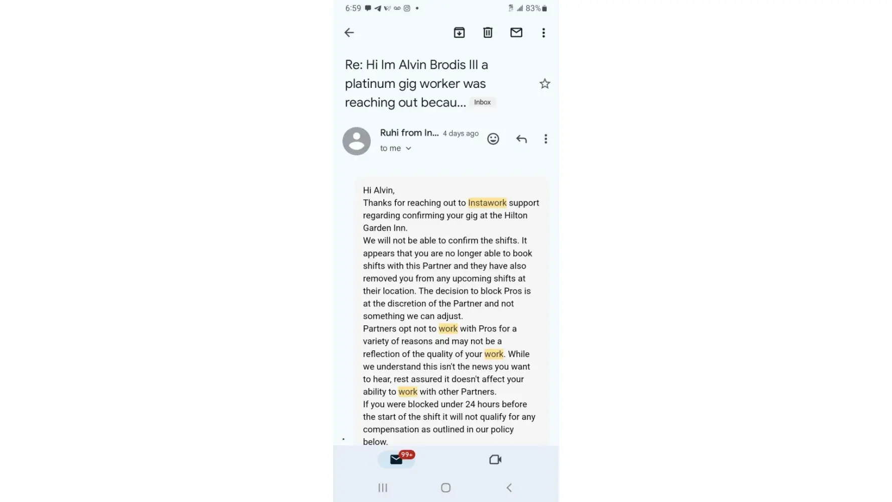 The following morning I was suspended by Instawork because, according to them, I was a no show.