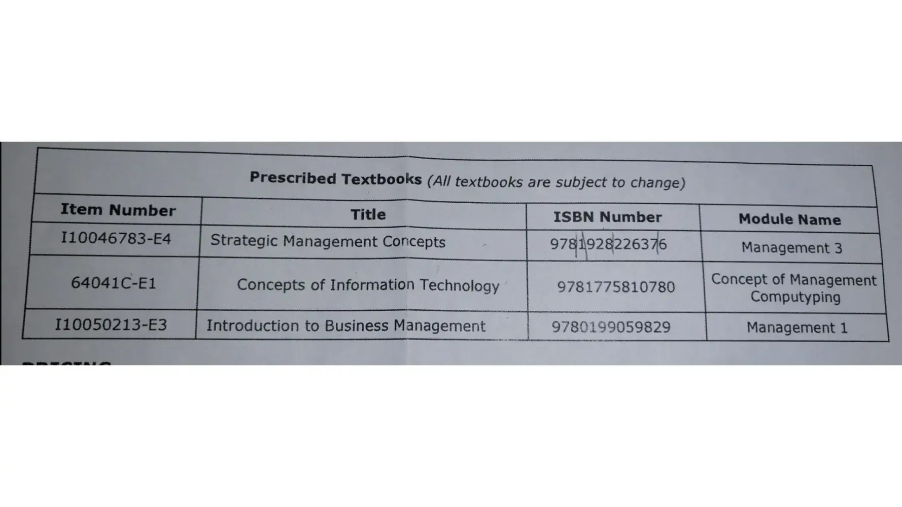 I've got text books for Concepts of Management Computing and Management 1 if you are interested in buying it from me. Books can only be traced using the ISBN codes.