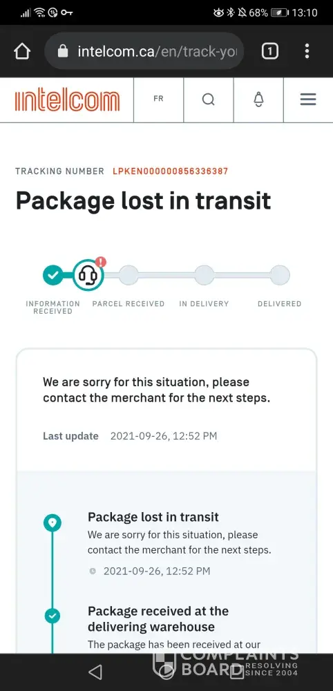 This is the second time with this package that I have received a fake delivery notice. I continue to purchase products on Amazon. ca that orientate from the USA. The sellers seem to favour Pitney Bowes and this company sub's the delivery out to Intelcom. When trying to track the package you are constantly told to contact a different company with a different tracking number. There is no accountability. I am still waiting for my package to be delivered by Intelcom after three days of phone calls and promises. This is not the first time I have experienced the total unprofessionalism of Intelcom and their total disregard for customer service. Unfortunately I have no other options through Amazon. ca and their sellers... I would pay extra for a competent delivery service. Totally underwhelmed.