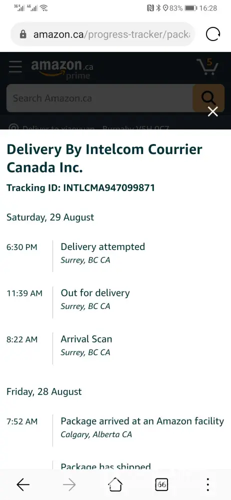 I ordered a package from Amazon and was expecting it today. I received an email at 8:45 saying they tempted to drop off my package and the business was close however I was there 45mins prior. I called Amazon and explained what had just happened and the agent said he got in contact with the driver and that they will re attempt. I then receive an email saying i will receive the package in 3 hours. Great! 5 hours pass and still no package. I call Intelcom because at this point, i want to go straight to the source. I explain the whole story to the nice agent and she herself inhaled and exhaled a great big puff of irritation because this seems to happen often. She explains that the driver once again wrote down that he attempted another time and that we were still close and brought the package back to the warehouse. Which means it is impossible for me to receive it today. WE WERE 5 EMPLOYEES IN THE COURRIER DEPARTEMENT WAITING FOR THE PACKAGE. Irritated, i called back Amazon if they can help and the agent seemed frustrated with Intelcom seeing shes receiving complaints day in and day out about the exact same thing. Safe to say..im annoyed. Name of the employee who was suppose to deliever my package : Paramjit