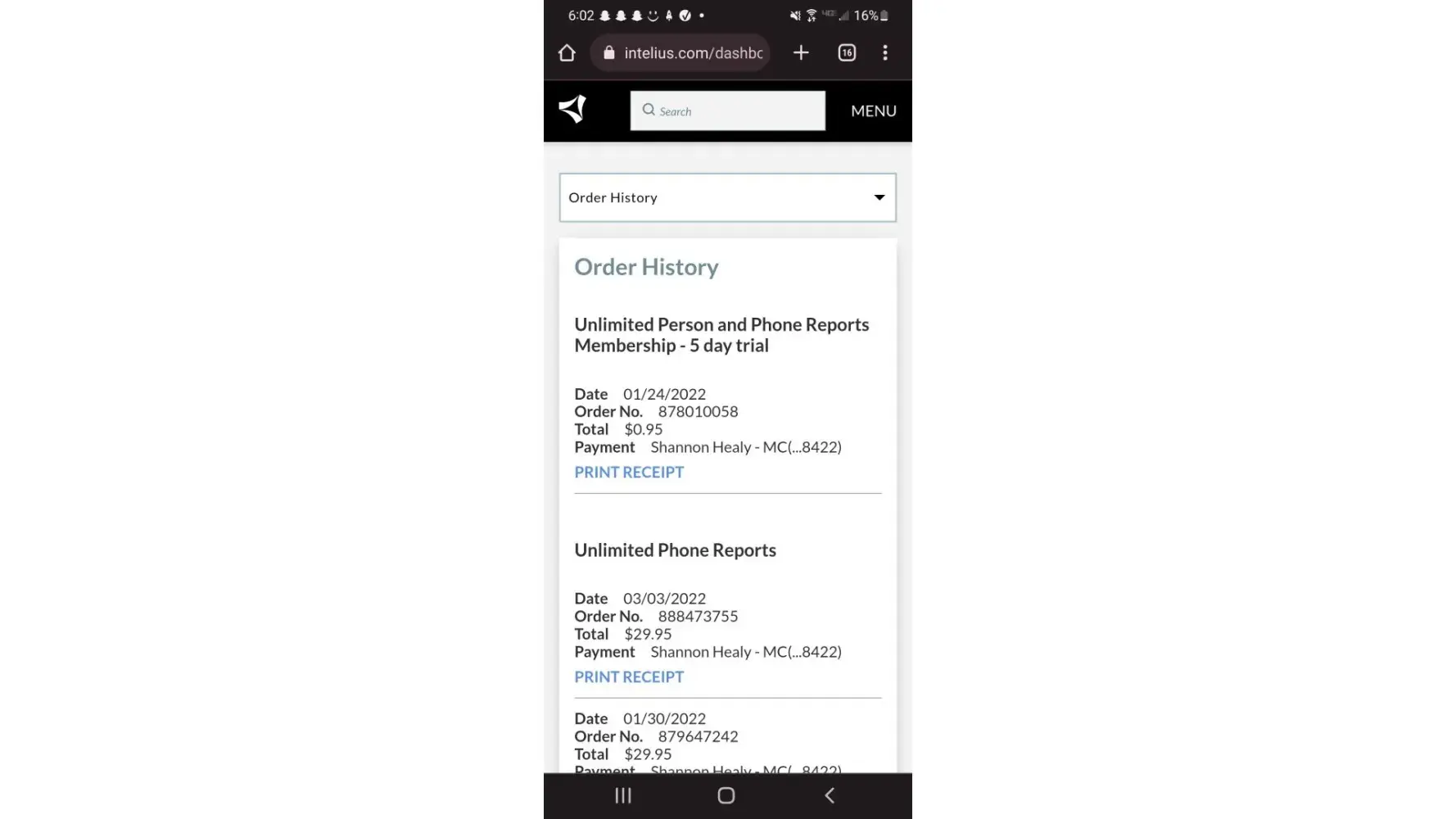 The charge on 12/5/22 is nowhere on my order history page, or anywhere in my intelius account, just in my checking account history.