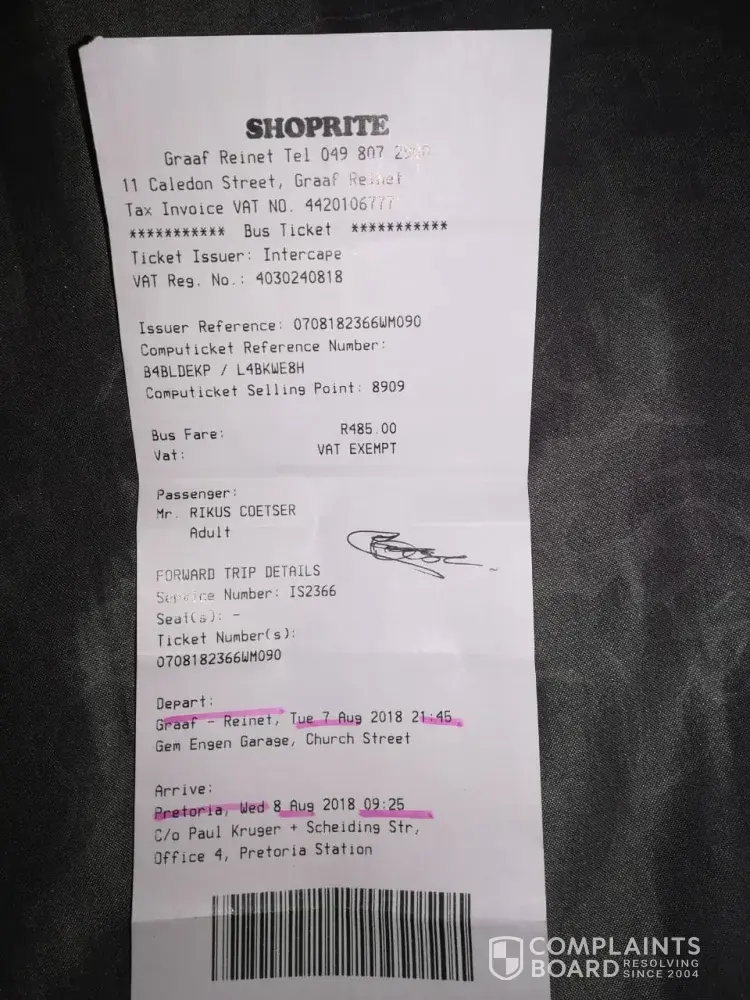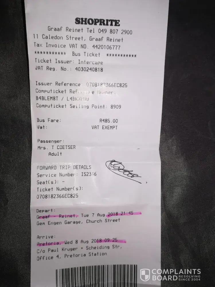 I have always regard Intercape as one of the leading companies in the industry and such behavior does a lot of damage to any companies reputation.