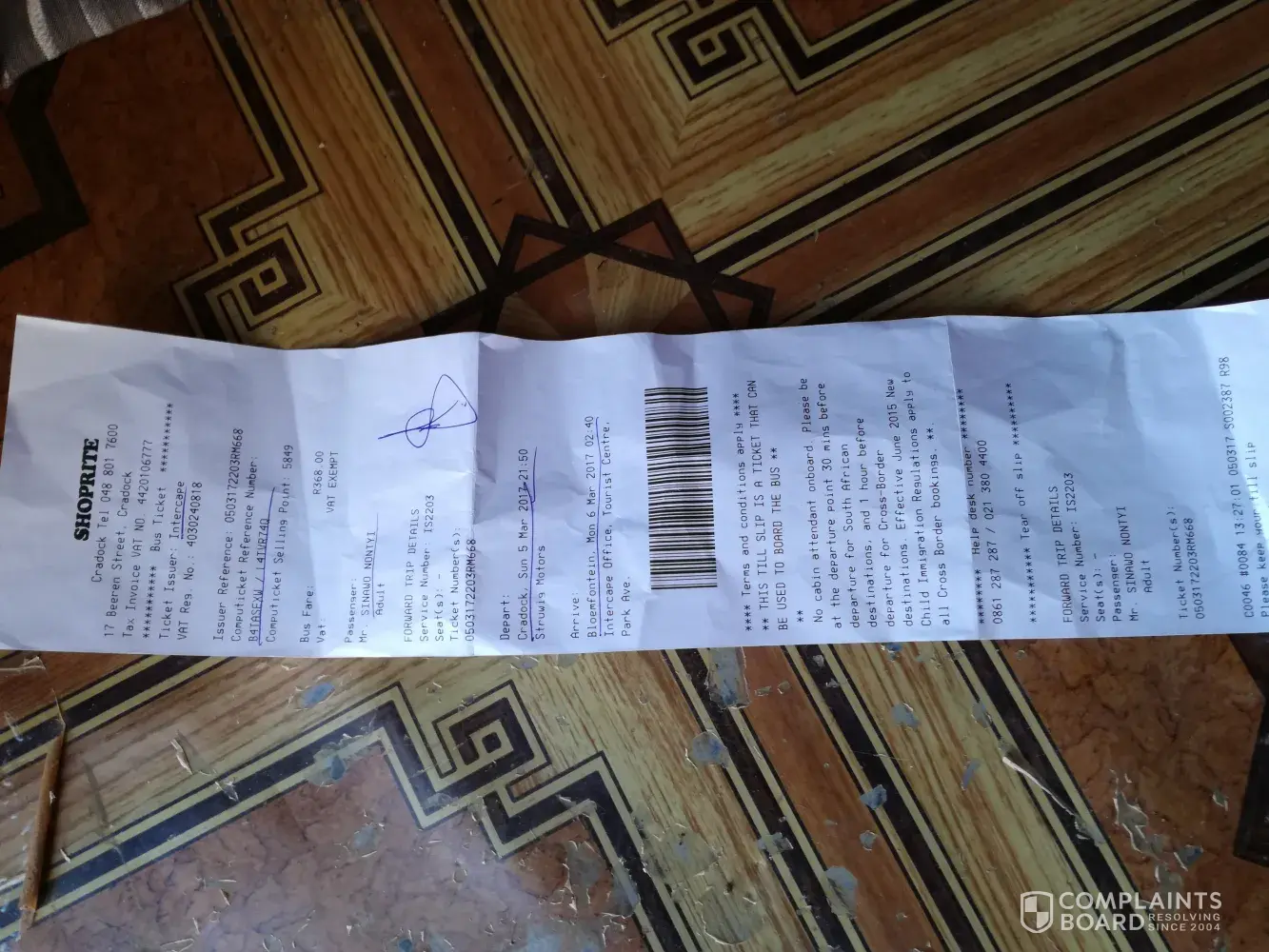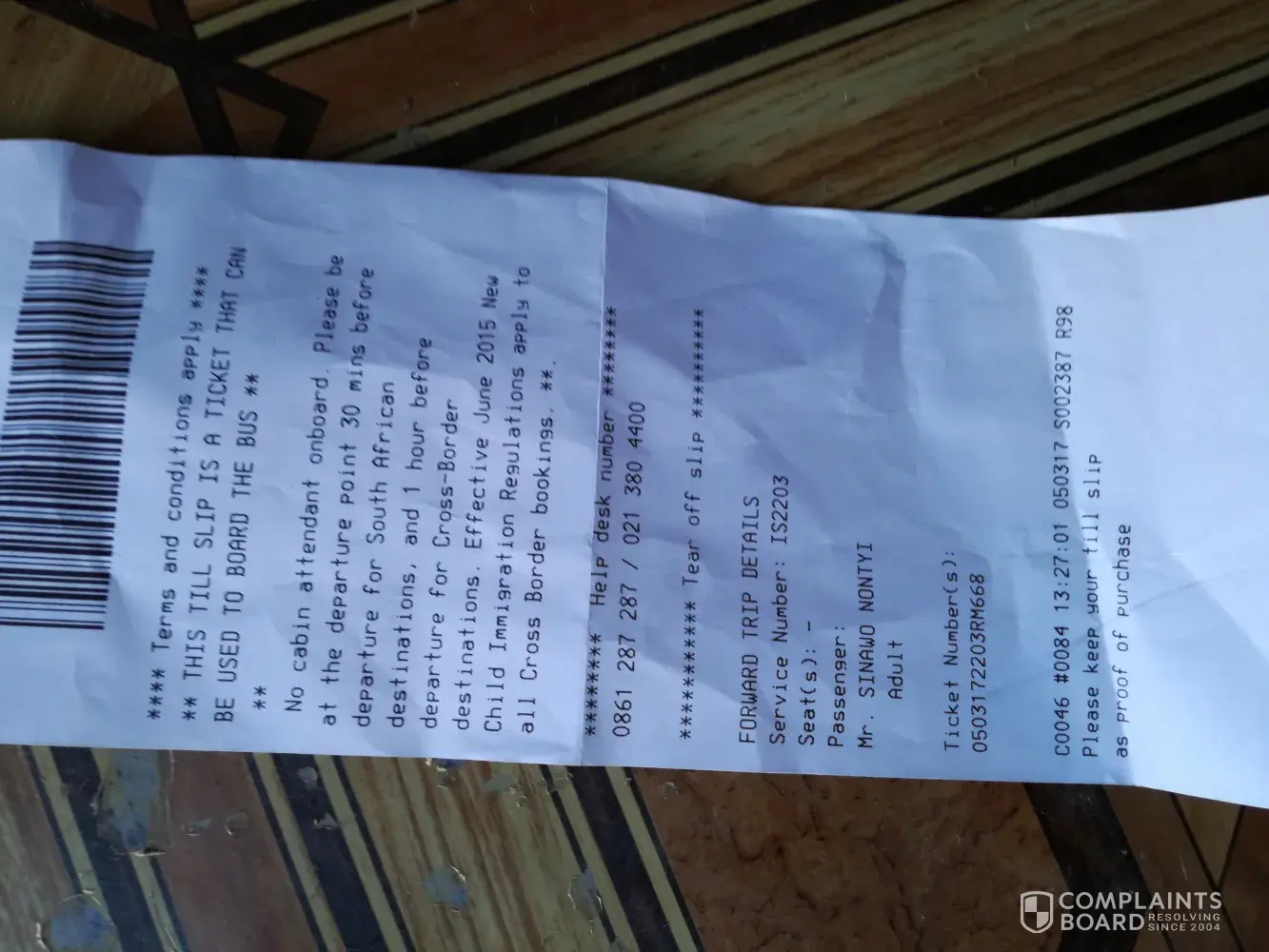 I feel an apology is not sufficient as I incurred additional expenses in my traveling. I had to used a credit card to purchase the R1000 ticket, which now is a debt I have to pay. Had I not had a credit card, I would have been stuck without a place to go. I would like to be compensated for all the stress and debt I find myself in.