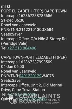 Im highly disappointed with the service that Intercape provides including the rude personnel