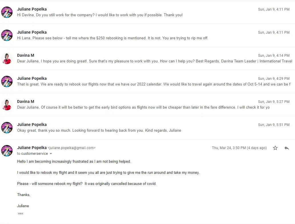 For 3 months now I have been told constant lies about my reservation. They refuse to rebook me. Every time they say it is being escalated and I will hear from someone in 24-48 hours.