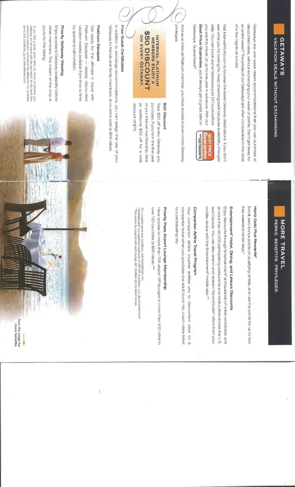 Several years ago Interval sold me on their Platinum membership which have several minor benefits but the only benefit worth jumping from their Gold to the Platinum is the companion air certificate. My account is on auto renew and I just last week received the welcome back packet outlining my benefits, which include companion air fare. When I called today to ask them to send the new cert for the new renewal year I was told they discontinued it in April. If the benefit was discontinued in April why did the packet I received for my June renewal indicate I still had the benefit? The first membership rep put me on hold for several minute to check to see if I was one of the grandfathered members that still had the benefit only to be told sorry I was not. I was then transferred to the resolution department which I felt would certainly take care of this . The resolution department told me there was no such grandfathered group and they could change benefits any time with out notice. Since they discontinued this in April and I did not renew until June my member package listing this benefit should have been honored and I am very sure I'm not the only person they have done this to.