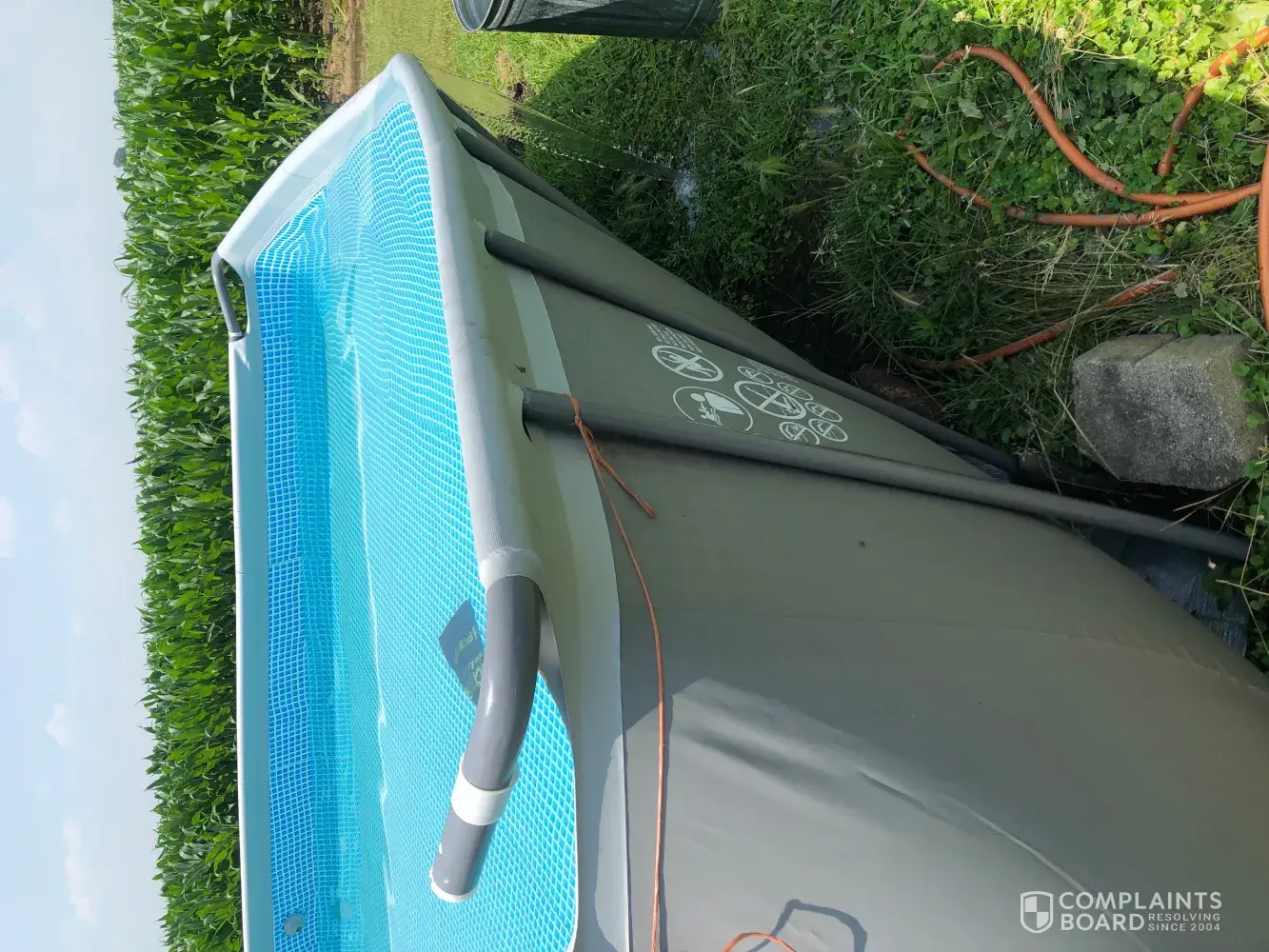 I purchased a pool for my son for his birthday. I kept having to fill it up every so often and I thought it was due to splashing. We were out of town for 4 days and I came home to a flooded yard. There was a tear on the inside between the inflatable tube. I called and the first representative hung up on me. The second gave me a lengthy process of things I needed to cut out of the pool. When I told her I could not cut the drain plug as there was a foot of water in my yard she advised that was policy. So for 3 days I drained this pool. I have the pictures and mailed my receipt and delivery confirmation. I live in Iowa so warm days are numbered. Now, nobody will return my emails and I can not get through to customer service. My yard is ruined, I did my part and now we have nothing. Here are the photos.