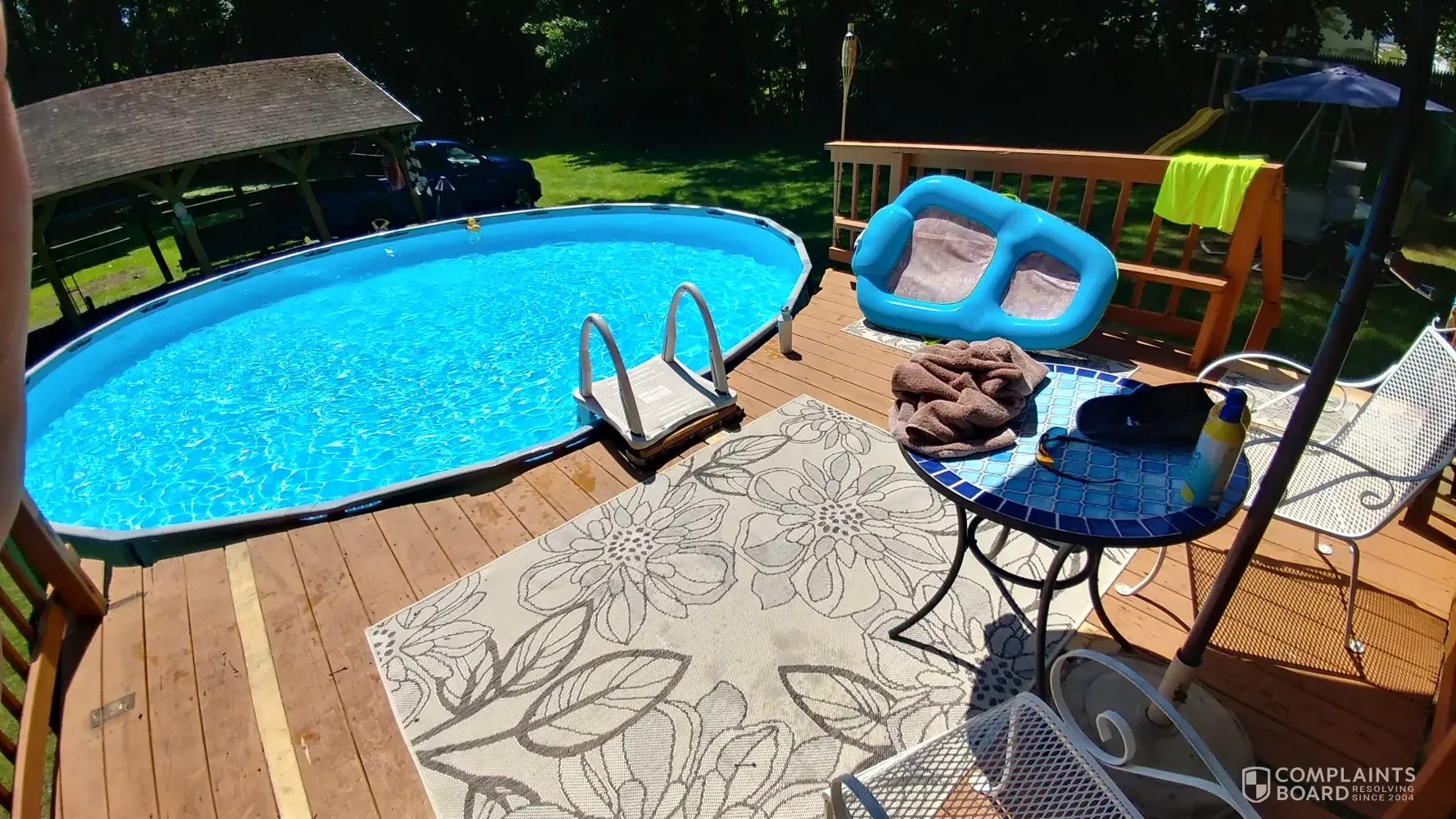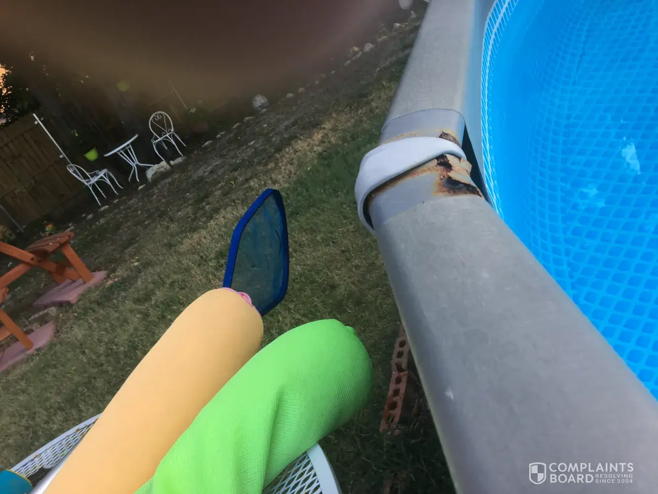 The first issue that we ignored was that the ladder rusts from the inside out, and everytime you move the ladder in and out of the pool a black liquid, assuming it is rusty water, just pours out all over the pool completely destroying the clarity of the water for the entire season. After only 1 season, 3 months, the pool was taken down exposing that all of the framework is completely rusted and beginning to fail. All of the metal frames are painted or powder coated only on the outside so as soon as you put it up, it begins rusting from the inside out. I'm on hold right now for close to an hour already for what I believe is the 6th or 7th time we'd tried to reach them.