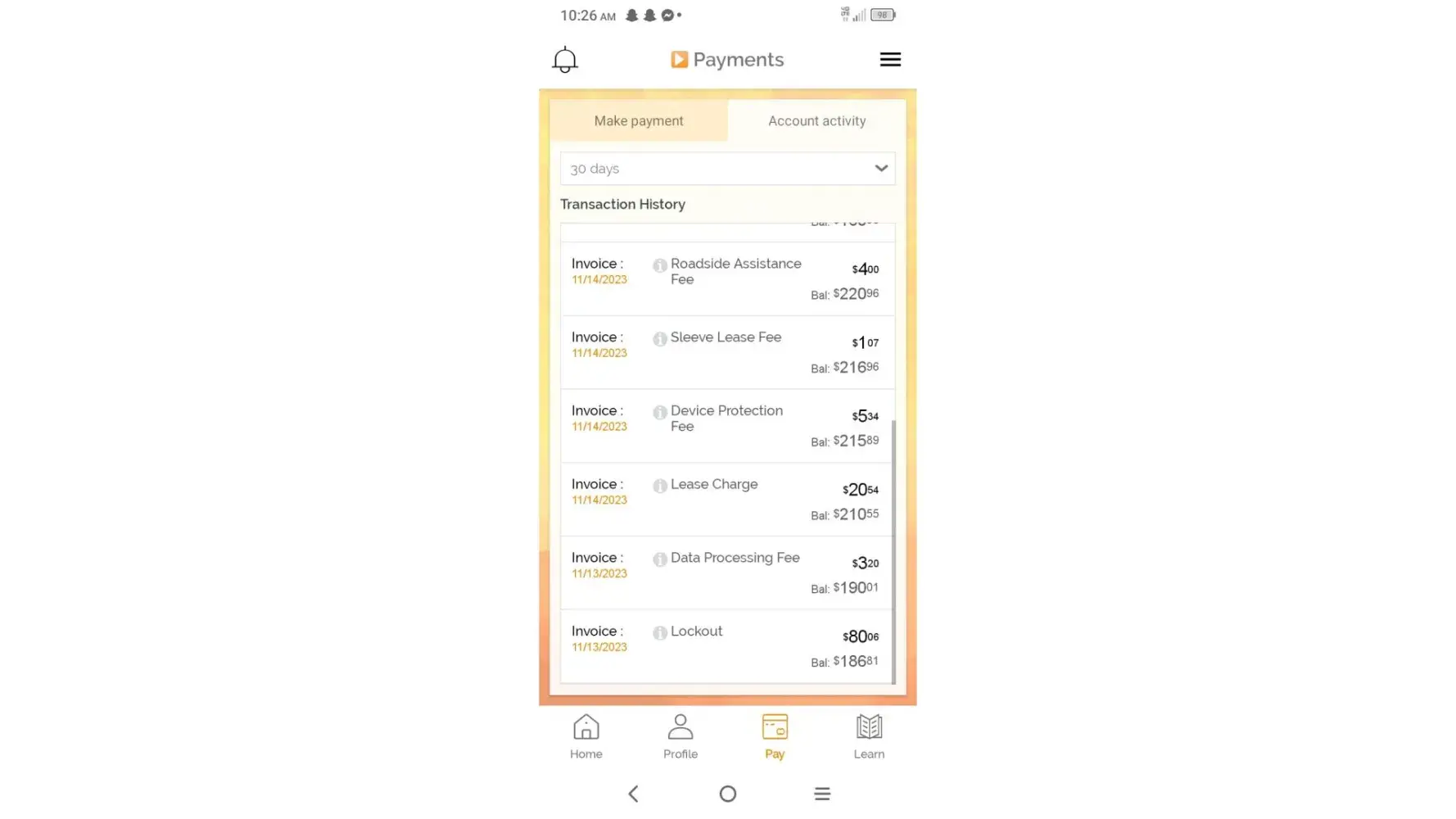 This company is supposed to charge me $30 every 2 weeks. Before I even had it a month .my bill is 400. This is the next month...I paid my 60 dollars and my bill just comes right back to 400.