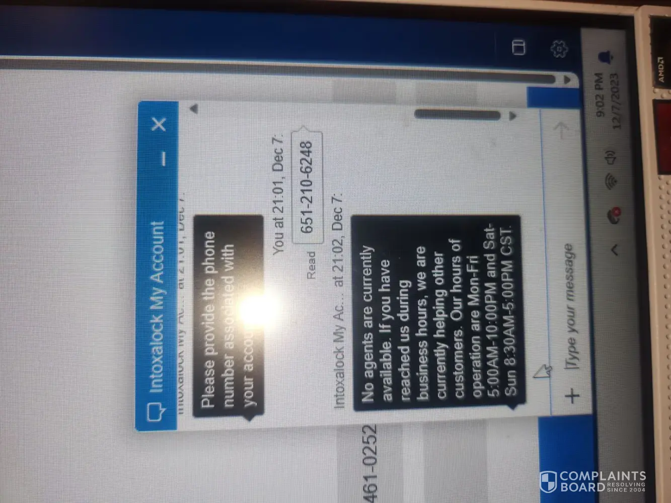 - While Intoxalock has a high level of trust, our investigation has revealed that the company's complaint resolution process is inadequate and ineffective. As a result, only 0% of 348 complaints are resolved. The support team may have poor customer service skills, lack of training, or not be well-equipped to handle customer complaints.