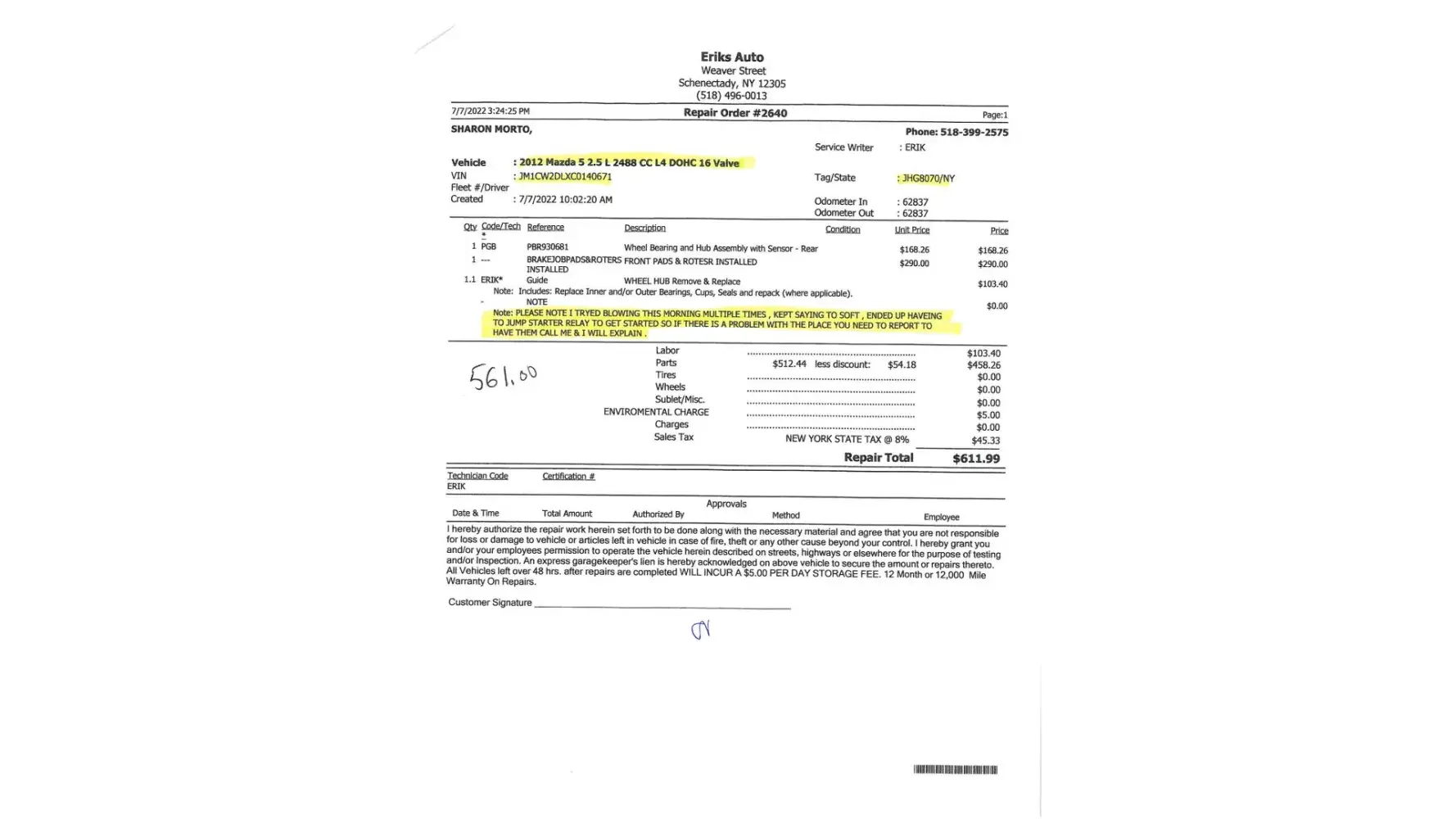 On July 7th my vehicle needed emergency repairs. The mechanic told me that he knew how to use the breathalyzer. He fixed my vehicle and when I went to pick the car up, he told me that he couldn't get the Intoxalock to work and it kept saying that his breath was "too soft". The mechanic noted all of this on my receipt. I have attached the receipt for confirmation.