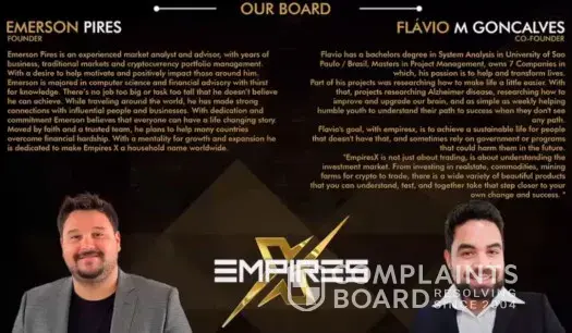 Read full complaint and 1 commentEmpiresX.com by Emerson Pires and Flávio Gonçalves - Cryptocurrency scam