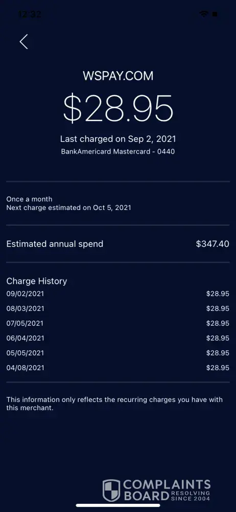 Read full complaintWSPay — Ijmuiden, Netherlands - Monthly charges to my credit card