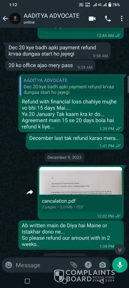 Read full complaintRudraksha Group Overseas Solution - Regarding money refund