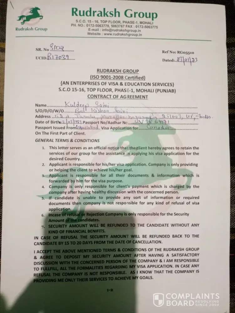 Dear sir/Mam Mera naam Kuldeep Saini hai.. Main U. P ke district Muzaffarnagar ka rahne wala hu.. December 2022 main mujhe Sukhpreet naam ki ek ladki ka call aaya jisne mujhe khud ko Rudraksha group overseas solution ki employee btaya. Sukhpreet ka kahna tha ke vo Mohali se baat kar rhi hai or unke office Rudraksha group overseas solution jo Mohali...