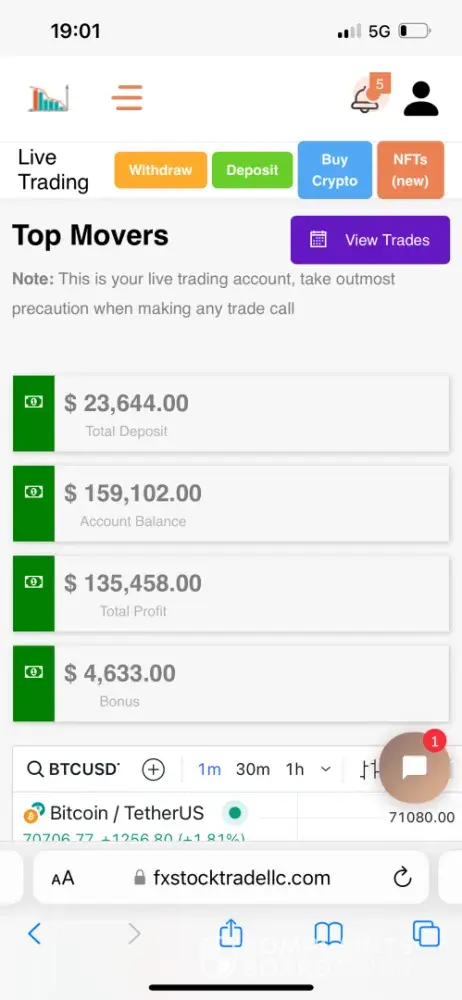 Good day, I do not know where to go anymore as no one is assisting. In Feb 2023 I was contacted by a Michelle Smith from FXstock trade LLC. In total they have $24,000 that I deposited in a more than one trf. Every time I try to withdraw, they came up with another payment and every time after fighting and fighting I made another and another payment. Thi...
