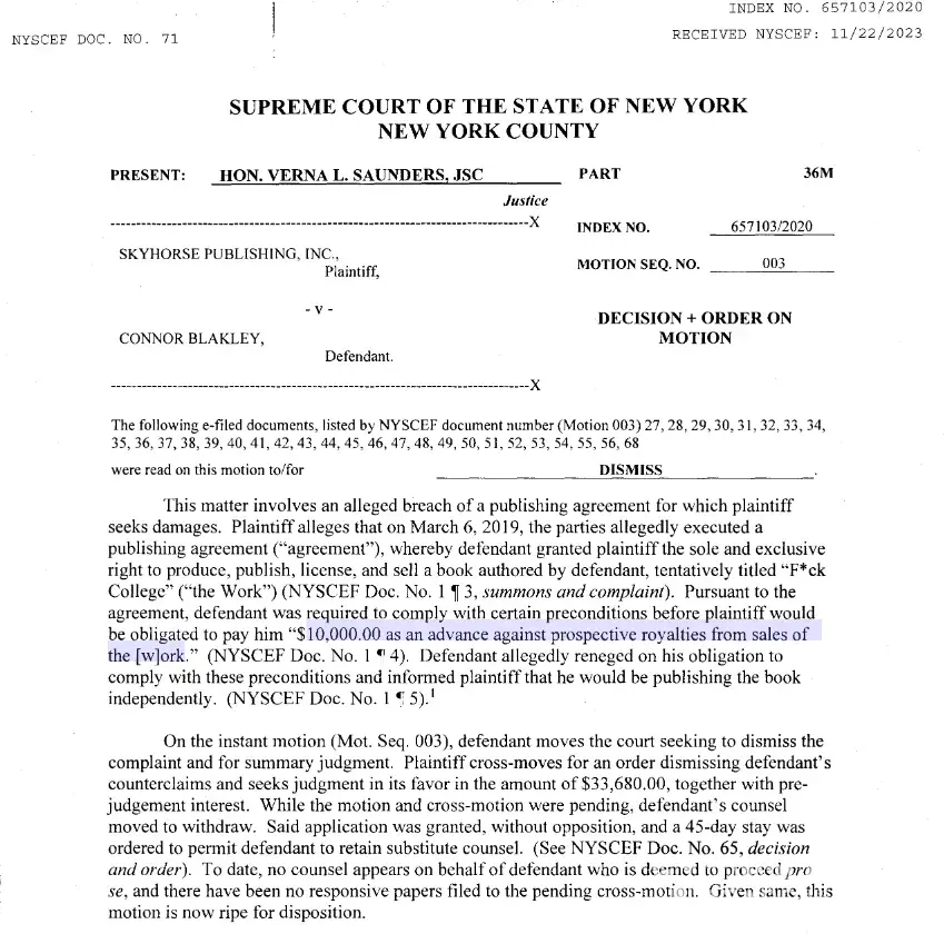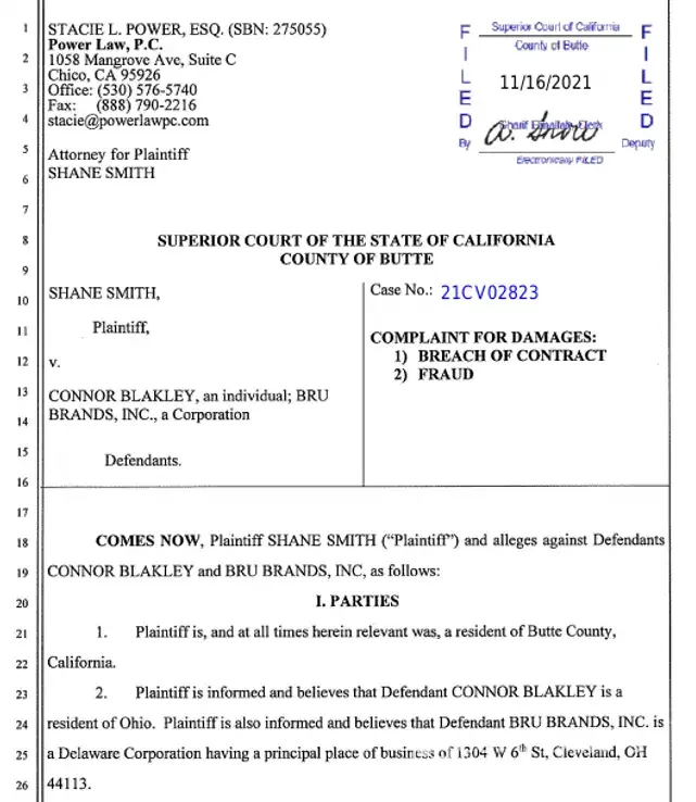 Read full complaintConnor Blakley (Bru Brands / Youth Logic) - Breach of contract and fraud: multiple $20,000+ lawsuits